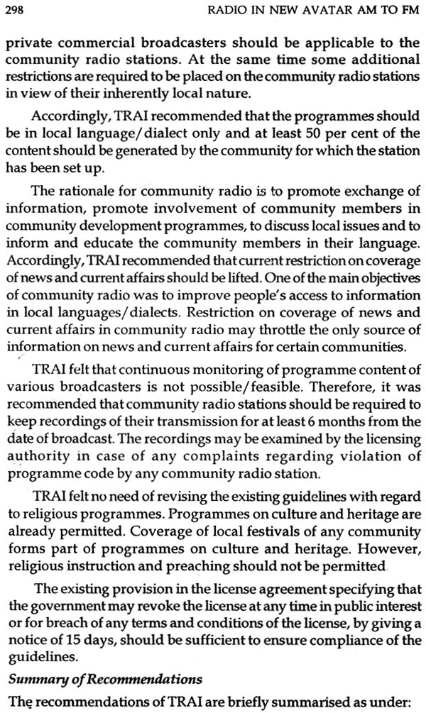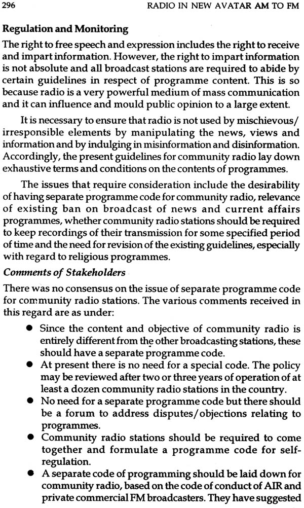 Though the book is focused on mainstream broadcasting, more precisely on private FM radio broadcasting, chapters have been included on community radio broadcasting and satellite radio broadcasting. The regulatory, technical and all other issues have been discussed in detail in the case of all three i.e. private FM radio, community radio and satellite radio.