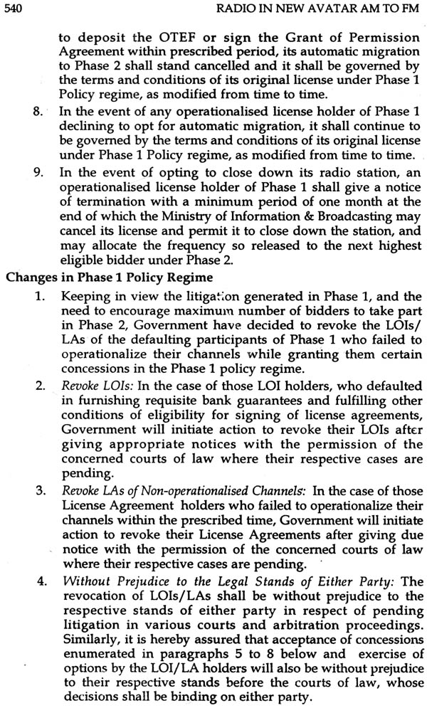 | IX | Policy on Expansion of FM Radio Broadcasting Services Through Private Agencies (Phase II), 2005 | 529 |