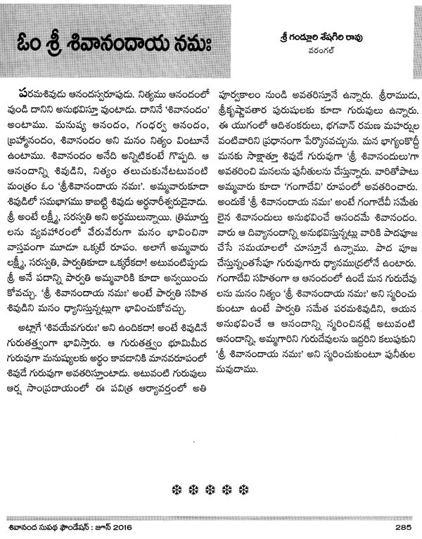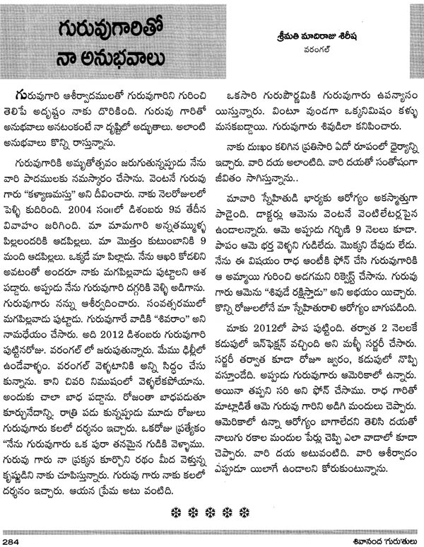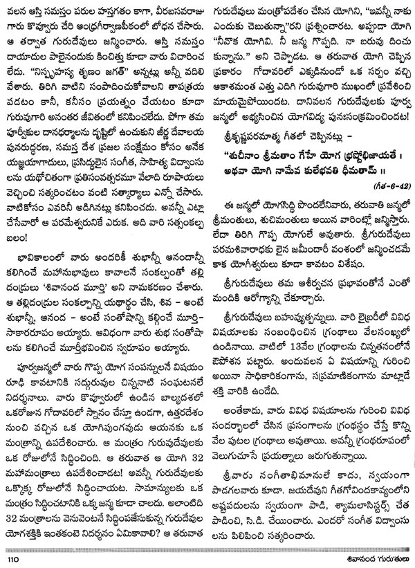 Shivananda Guru Thulu - Reminiscences (Telugu)