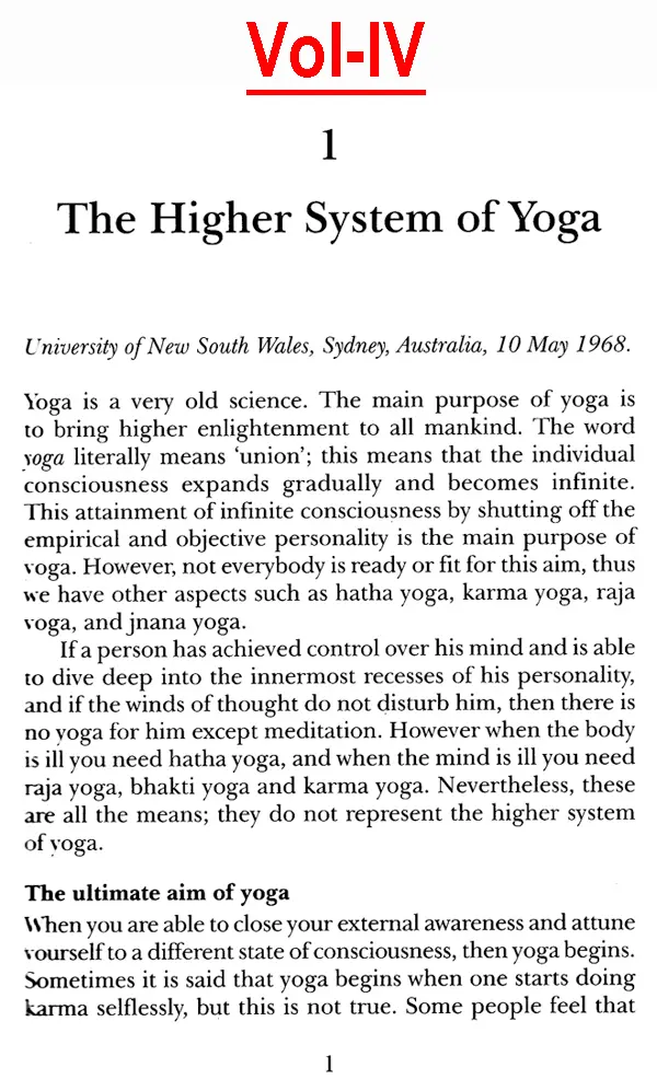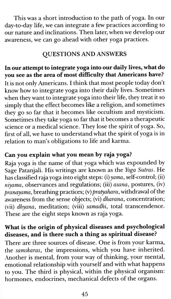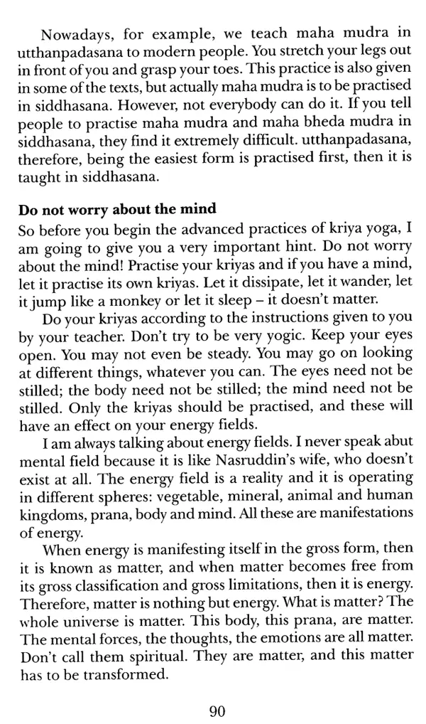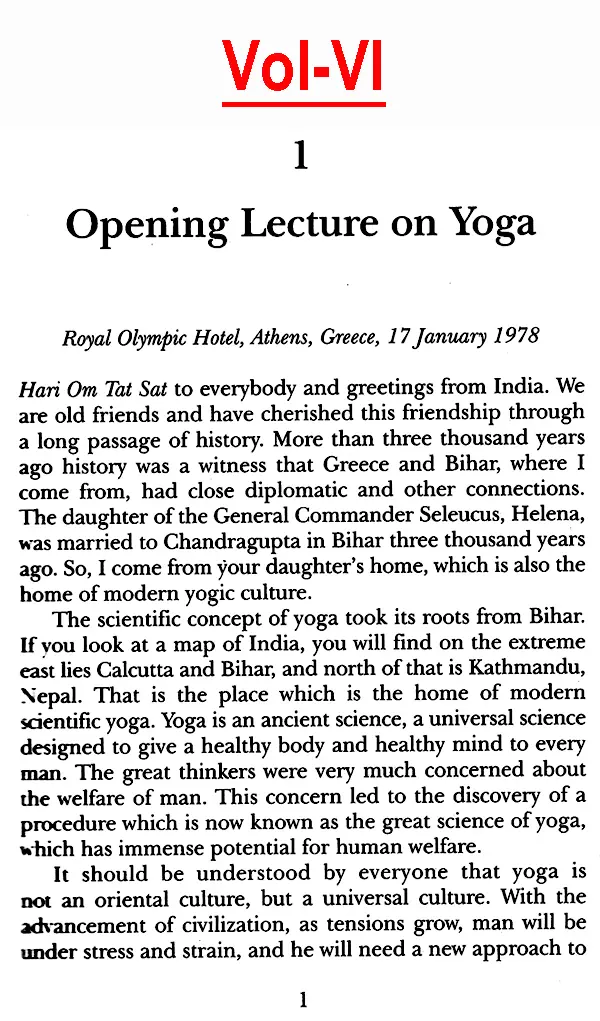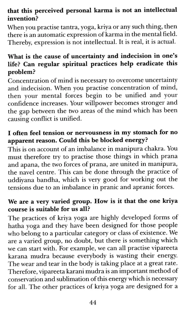 Teachings of Swami Satyananda Saraswati: Volume I includes question and answer sessions given during Swami Satyananda's 1979 All European Tour, his 1980 visit to Australia and the Kriya Yoga and Teacher Training courses conducted at Bihar School of Yoga during these same years. Questions on topics ranging from the problems one faces in daily life to the highest concepts of yoga, tantra and spiritual evolution are answered with characteristic vision, understanding and colour.