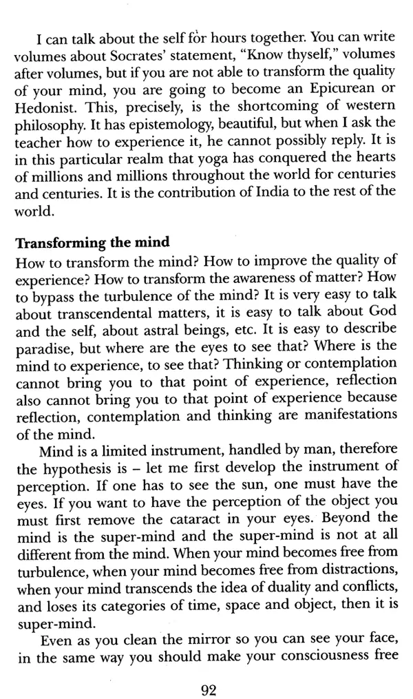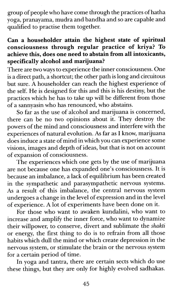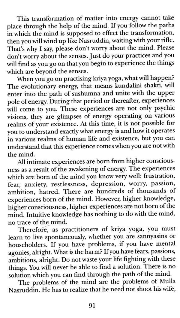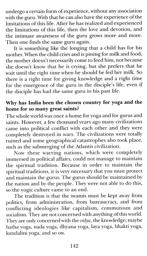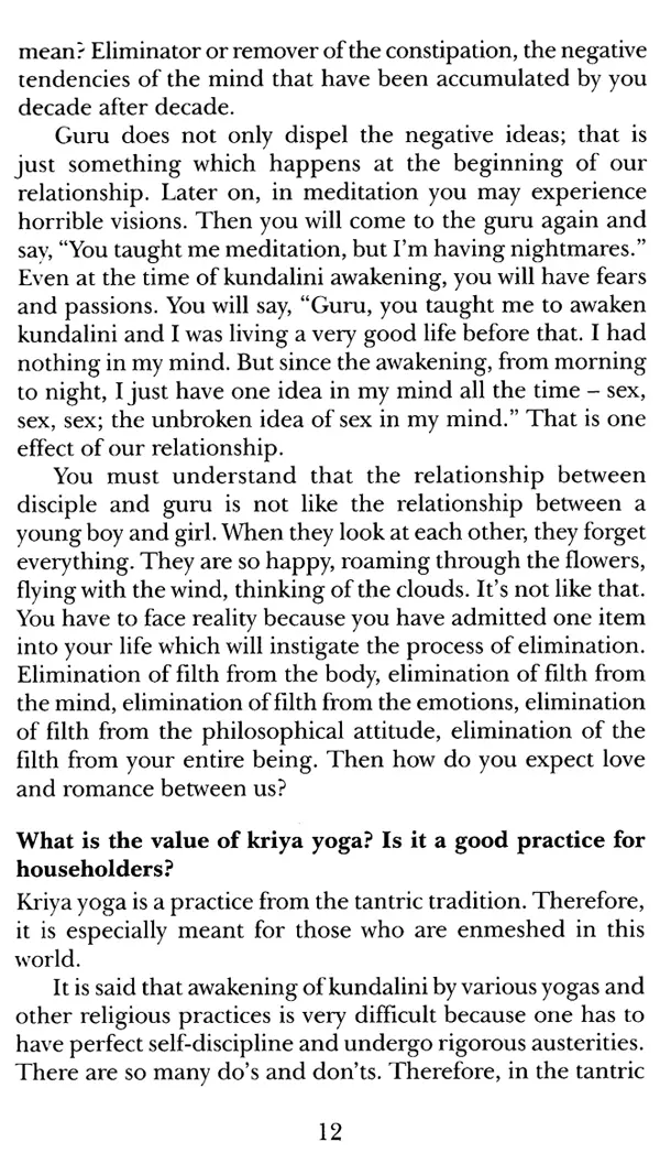 Teachings of Swami Satyananda Saraswati: Volume I includes question and answer sessions given during Swami Satyananda's 1979 All European Tour, his 1980 visit to Australia and the Kriya Yoga and Teacher Training courses conducted at Bihar School of Yoga during these same years. Questions on topics ranging from the problems one faces in daily life to the highest concepts of yoga, tantra and spiritual evolution are answered with characteristic vision, understanding and colour.