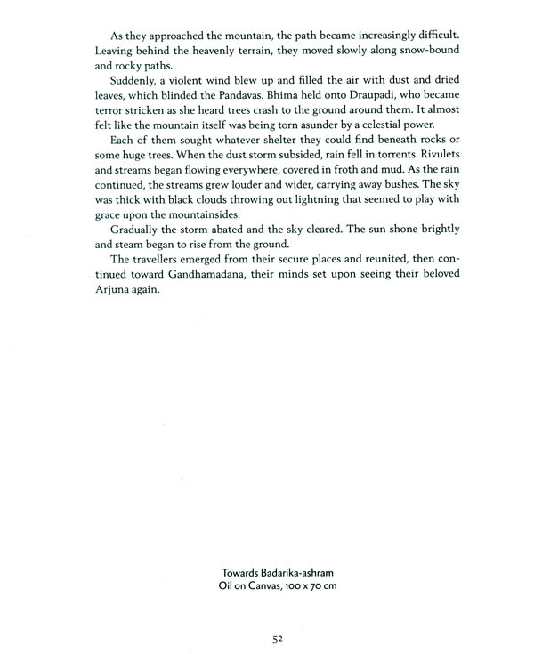 MOSA purchased the Mahabharata collection by Jananjana Dasa before it miraculously found its way to the ground floor of the main building of Villa Vrindavan, where it is now permanently housed. The works seem to have been made for the walls of the renovated villa, without anyone having been conscious of how this match would take place. Maybe providence played a role. The whole collection perfectly fits in the spacious ground-floor rooms. When I walk through the rooms filled with Mahabharata scenes, I am mesmerized by the size of the paintings and the intensity of the anecdotes and stories they present. They carry us back to a time of great saintly warriors and sages.
