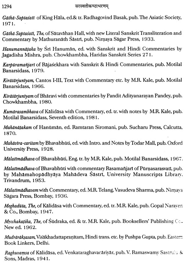 The (APB) contains only the text, with the karikas numbered and the examples without numbering. In the Notes at the end of the work, the Sanskrit chayas of many of the Prakrit verses have been furnished, and also the sources of many of the examples.