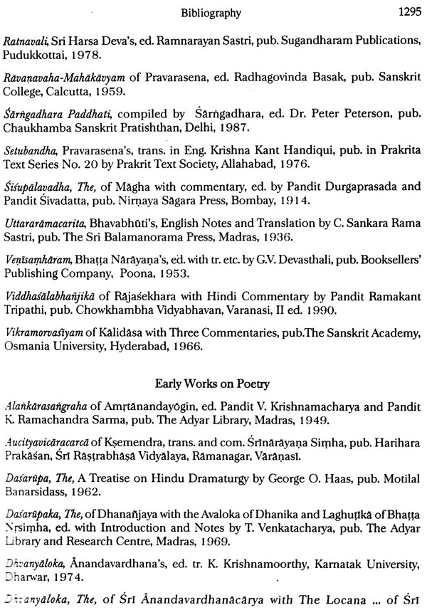 In Volume I are included the first two chapters, in which are discussed Defects, Merits and the Figures of Speech of Word. Volume II has the third and forth chapters, which discuss the Arthalankaras and the Ubhayalankaras. Volume III contains the fifth chapter which presents Bhoja's conception of Srngara. This is followed by the bibliography and the indices.