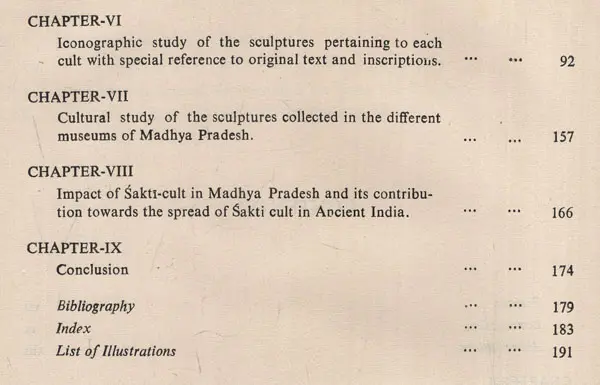 No serious attempt has been made, so far, to study the sculptures of the museums except Shri R.S. Garg who wrote a small monograph on the Saktis of Central Museum, Indore, and also a guide book on these deities of Dhubela Museum by S.K. Dixit. Encouraged by these works we have made a humble attempt to study the Sakti sculpture of museums of Madhya Pradesh. For a significant study the present work is divided into different chapters dealing with all social and religious aspects of the contemporary society in general and Madhya Pradesh in particular.